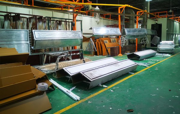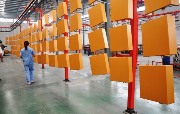 德國進(jìn)口的全長250米的全自動噴涂生產(chǎn)線,以及木紋轉(zhuǎn)印車間。